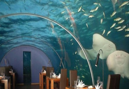 馬爾代夫港麗度假開設(shè)的第一個全玻璃海底餐廳。該餐廳為了慶祝他們的周年紀念而建,為客人也提供了體驗機會,不僅吃海下的,還在海下吃,睡在海下。真的是不可思議。意境也不用說了,是多么壯麗。