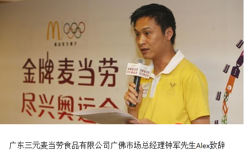 廣東三元麥當(dāng)勞食品有限公司廣佛市場總經(jīng)理鐘軍先生Alex致辭