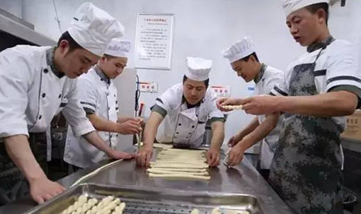 “鐺鐺……”清晨4時,鬧鈴響過后,司務長丁紅從床上彈了起來,他邊穿衣服邊喊著“起床”的口令。炊事班的一天就這樣開始了,有的同志整理內務,有的同志“占領”廁所,有的同志搶占洗漱臺。4時15分,準時開火,炊事操作間內,8名穿著炊事服的身影開始忙起來。