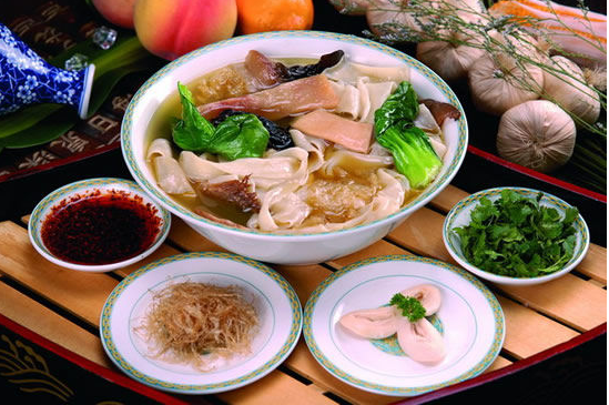 景祥獨(dú)特的羊肉滋補(bǔ)燴面,驗(yàn)證了中醫(yī)學(xué)中“藥食同源”的理論。燴面制作考究,無(wú)論品相、口感,都稱得上極品,色、皿、味、香、形樣樣講究。簡(jiǎn)單一碗面就要經(jīng)過(guò)熬制羊肉湯、制作面胚、準(zhǔn)備調(diào)料、拉面煮面等工序。