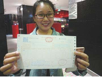 來青旅游的威海女士丁風菊在海底撈取得首張營改增擴圍后的餐飲業發票。