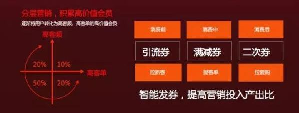 只要商家接入了平臺,口碑就能整合阿里巴巴集團各個渠道的數據,比如高德地圖、滴滴等平臺的LBS數據,淘寶的類目偏好數據,支付寶的消費能力數據,再加上口碑在菜品方面的數據,以這些消費行為數據為基礎,用算法幫助商家自動生成一對一的營銷方案。
