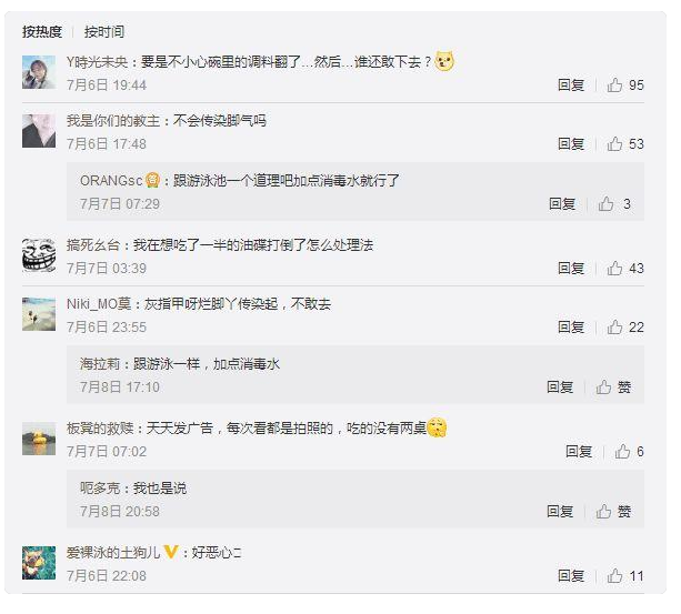 翻看眾多網友的評論,盡管人們都覺得新奇,但是大部分網友都把關注點放在了“不干凈”“腳氣足癬傳染病”“油漬”等問題上。
