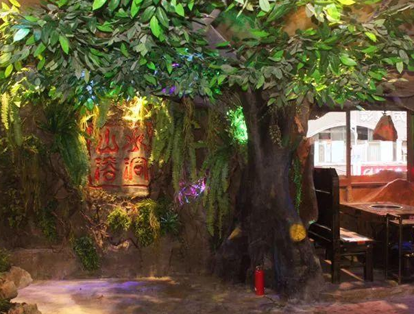 (山水溶洞火鍋內部裝修如溶洞景區)