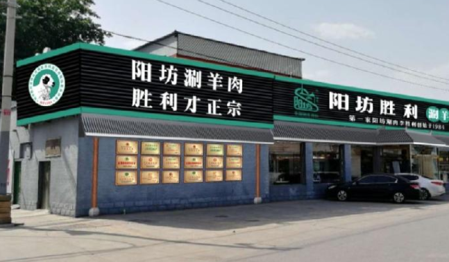 首先確定了陽坊鎮(zhèn)老店的門頭上的品牌故事:第一家陽坊涮羊肉由李勝利創(chuàng)始于1984,強調(diào)“陽坊涮羊肉,勝利才正宗”。